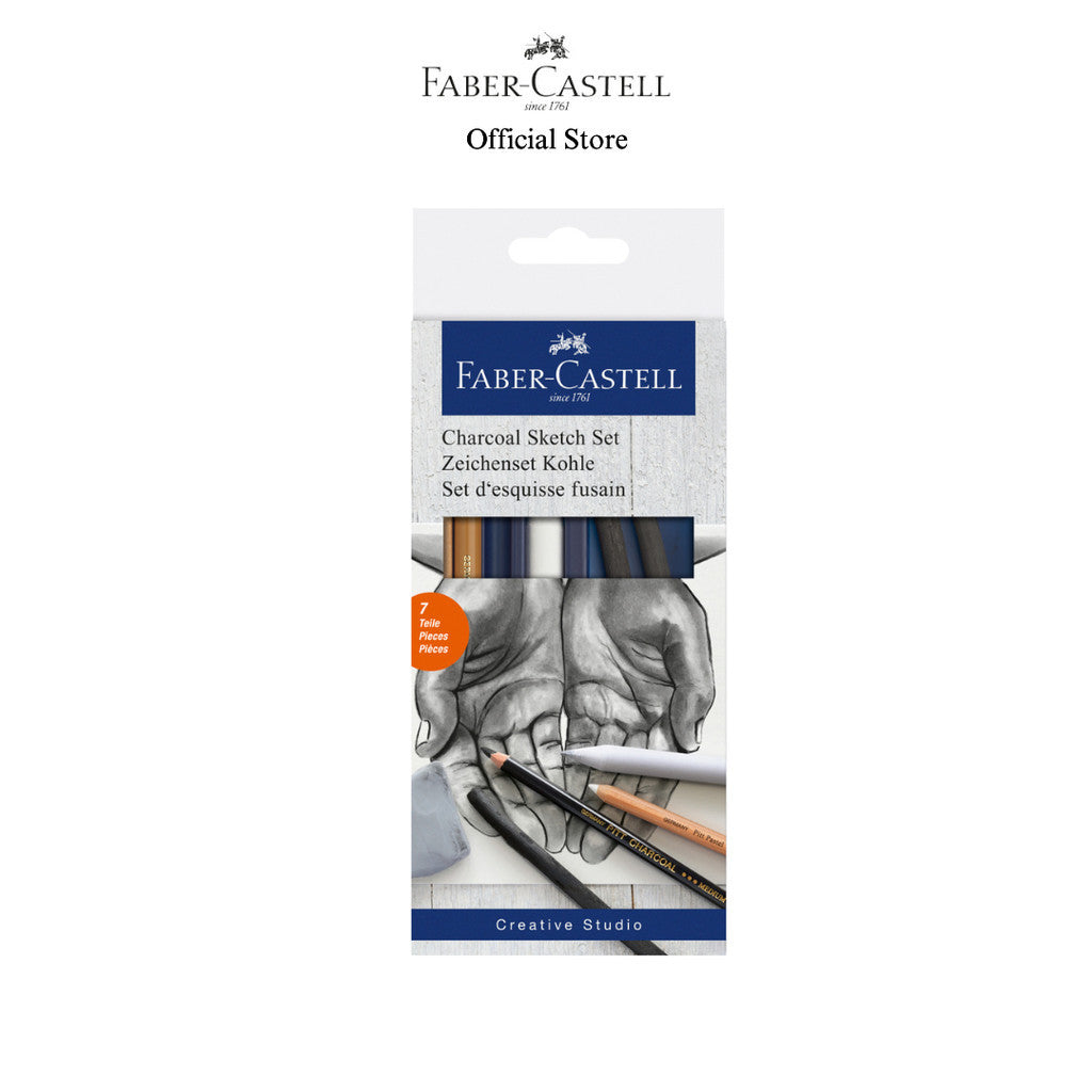 ● Charcoal Sketch Set Contains: 2 Pitt natural charcoal sticks (6 - 11mm), 1 Pitt charcoal pencil medium, 1 Pitt compressed charcoal pencil soft, 1 Pitt Pastel pencil white medium, 1 kneadable eraser and 1 paper wiper.