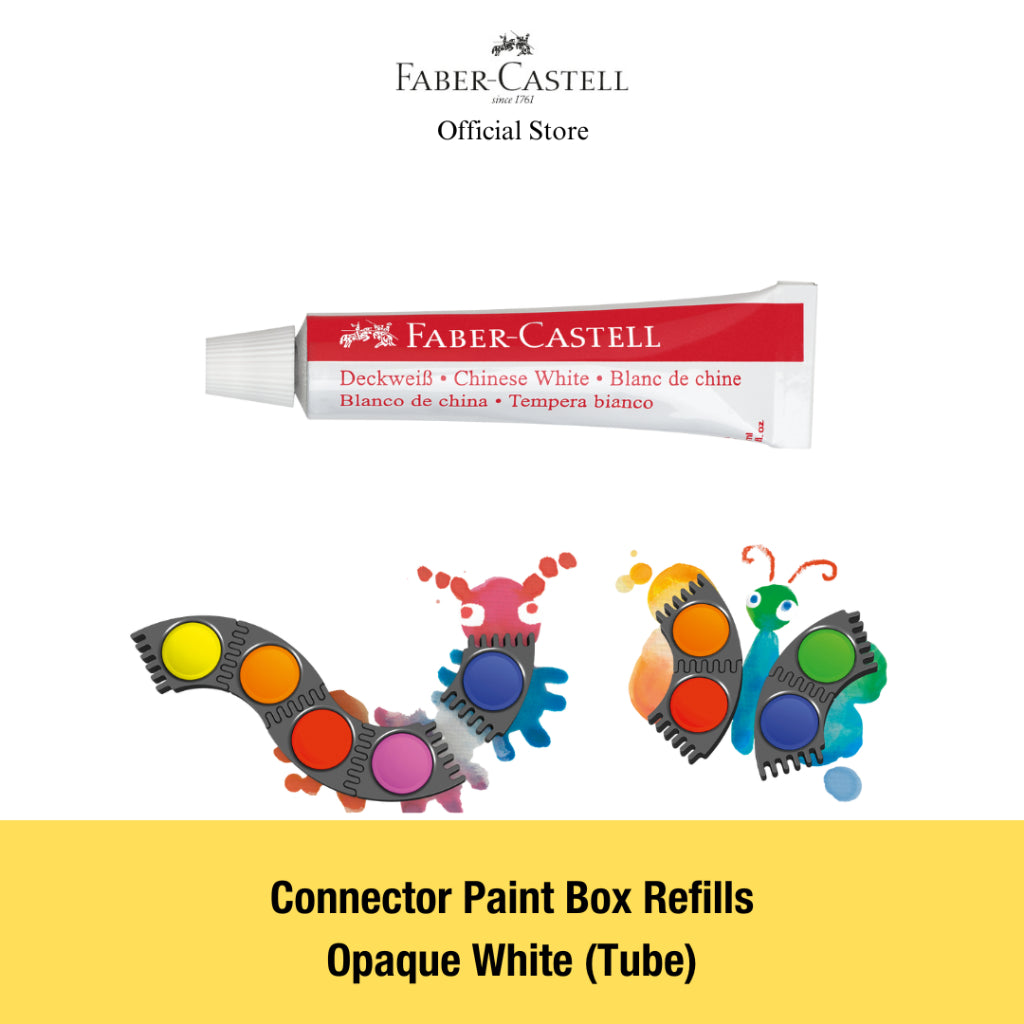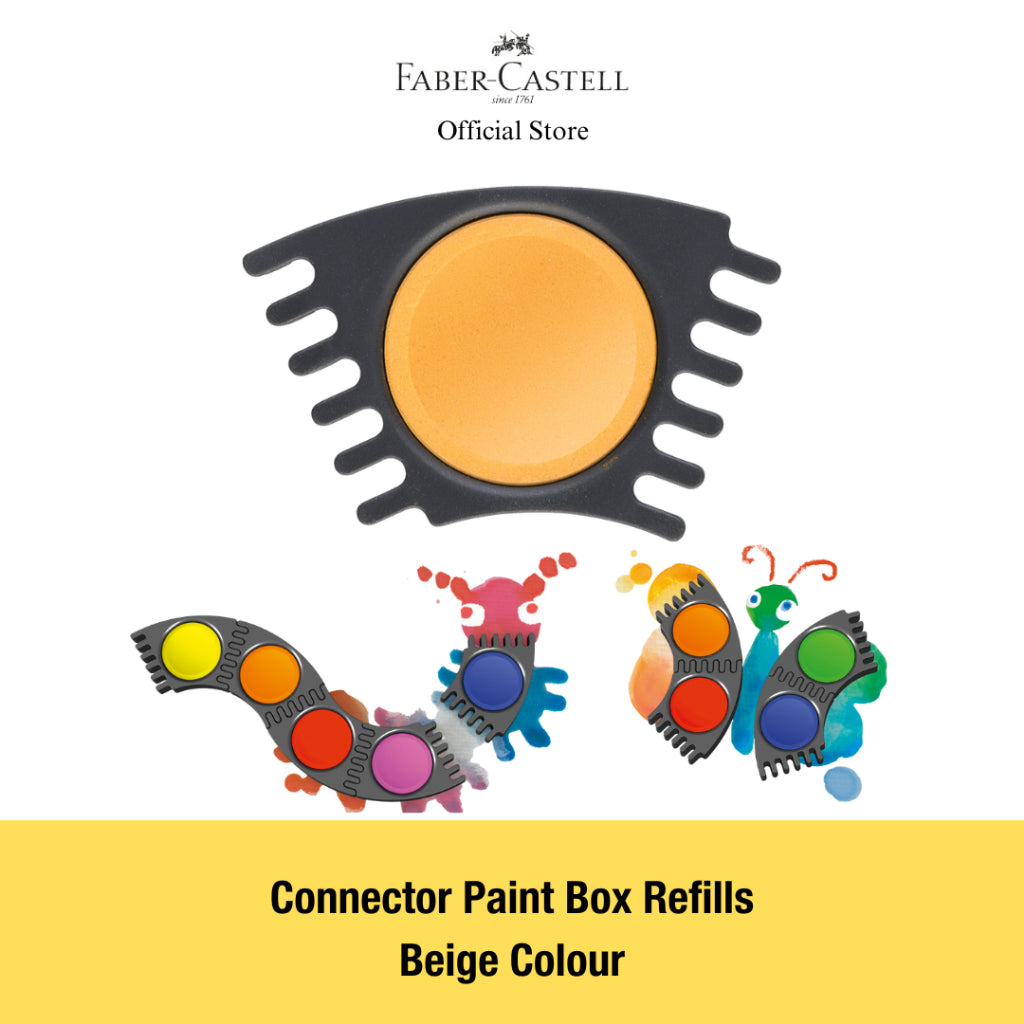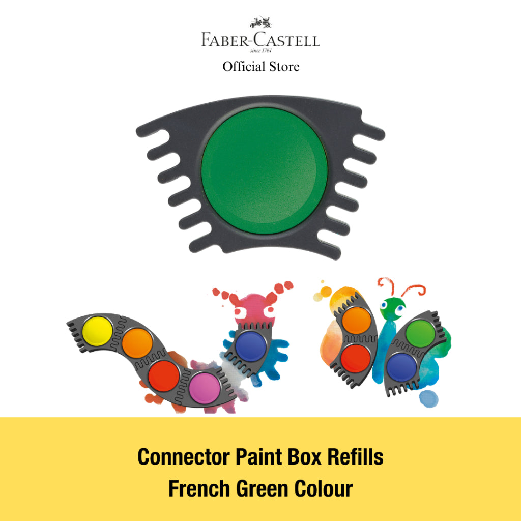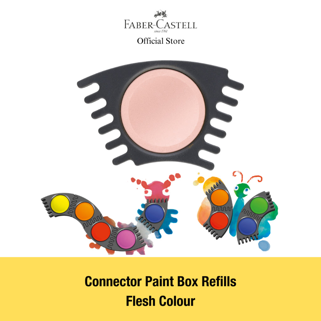 Connector refill - 7mm deep pans for Faber-Castell Connector Paint Box. These brilliant watercolor connector paints feature an innovative design that allows them to be clicked together. Teachers love them beause they can be worked with a few colors at a time. Excellent opacity, fast color absorption and easy mixing.