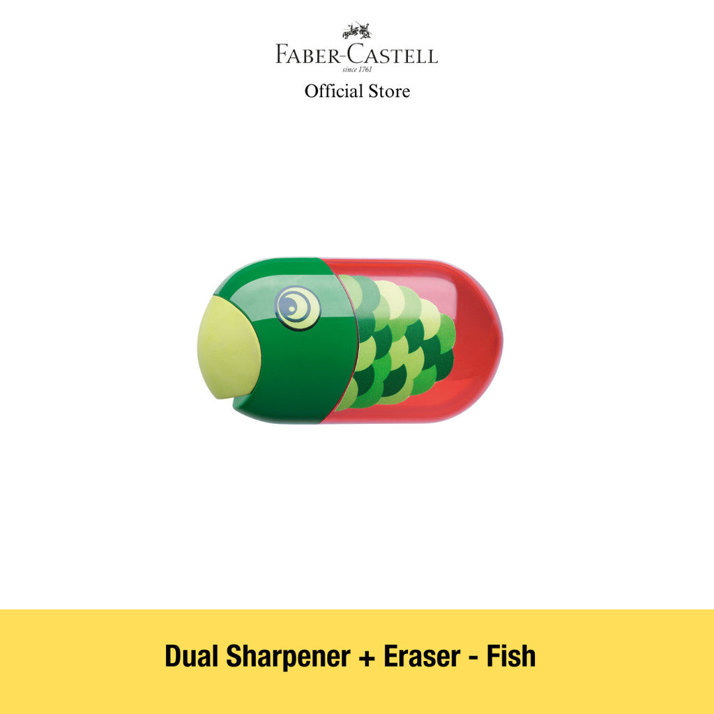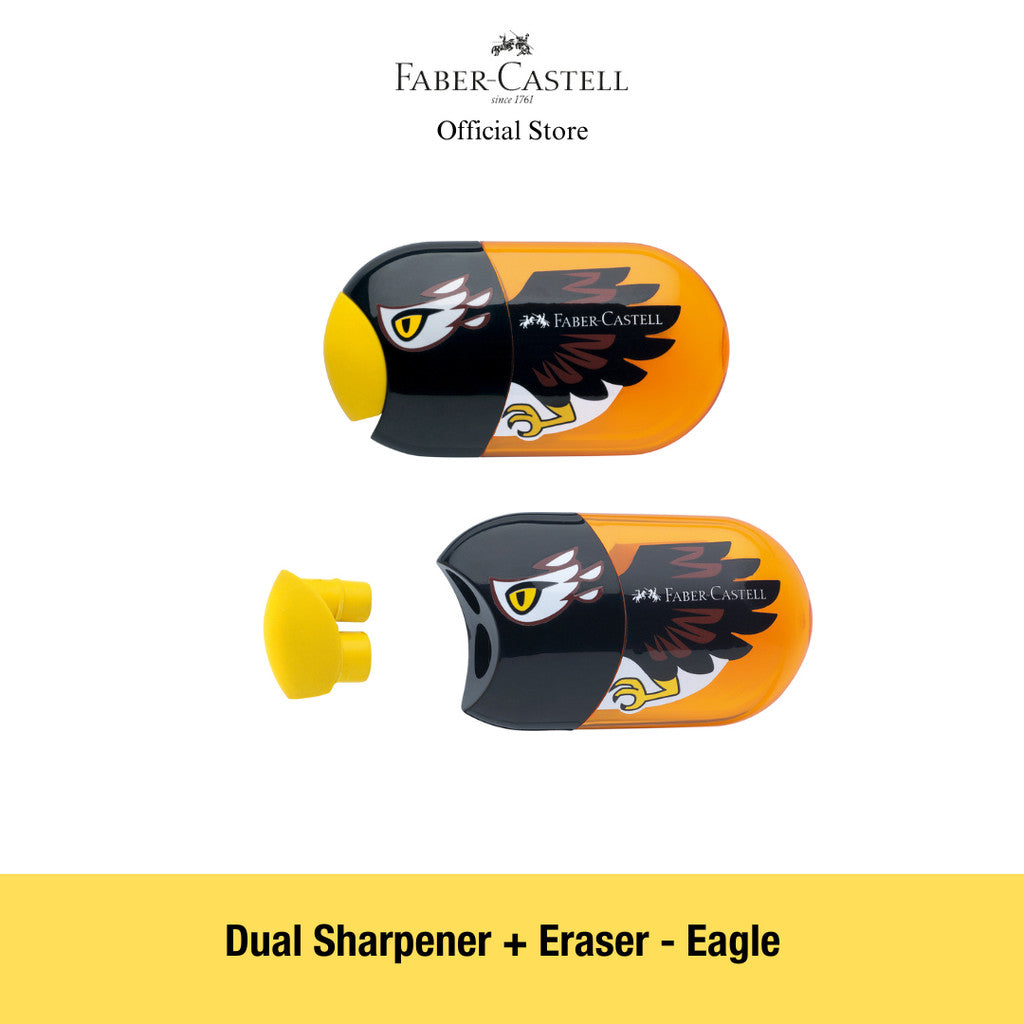 Faber-Castell Dual sharpener are designed in attractive designs for children. From Eagles to Fish and Ladybirds, remind children of nature and animals. The Dual Sharpener eraser comes with two pencil sharpener holes (for Standed pencils and Jumbo Pencils), as well as an eraser which also doubles as a stopper to prevent sharpener bits from coming out when stored in your bag. Our Sharpeners are also made with a safety screw, meaning that the sharpener blades cannot be removed by standard tools, making it extra safe for children.