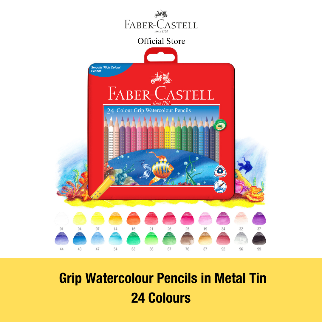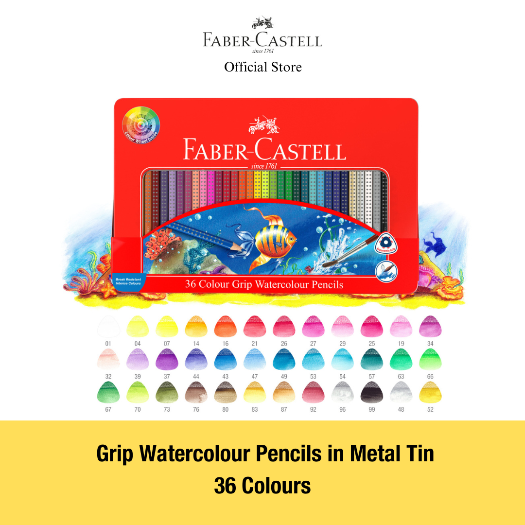 - Set comes with 12 OR 24 OR 36 Grip colour pencils and a brush, fitted in a metal tin case