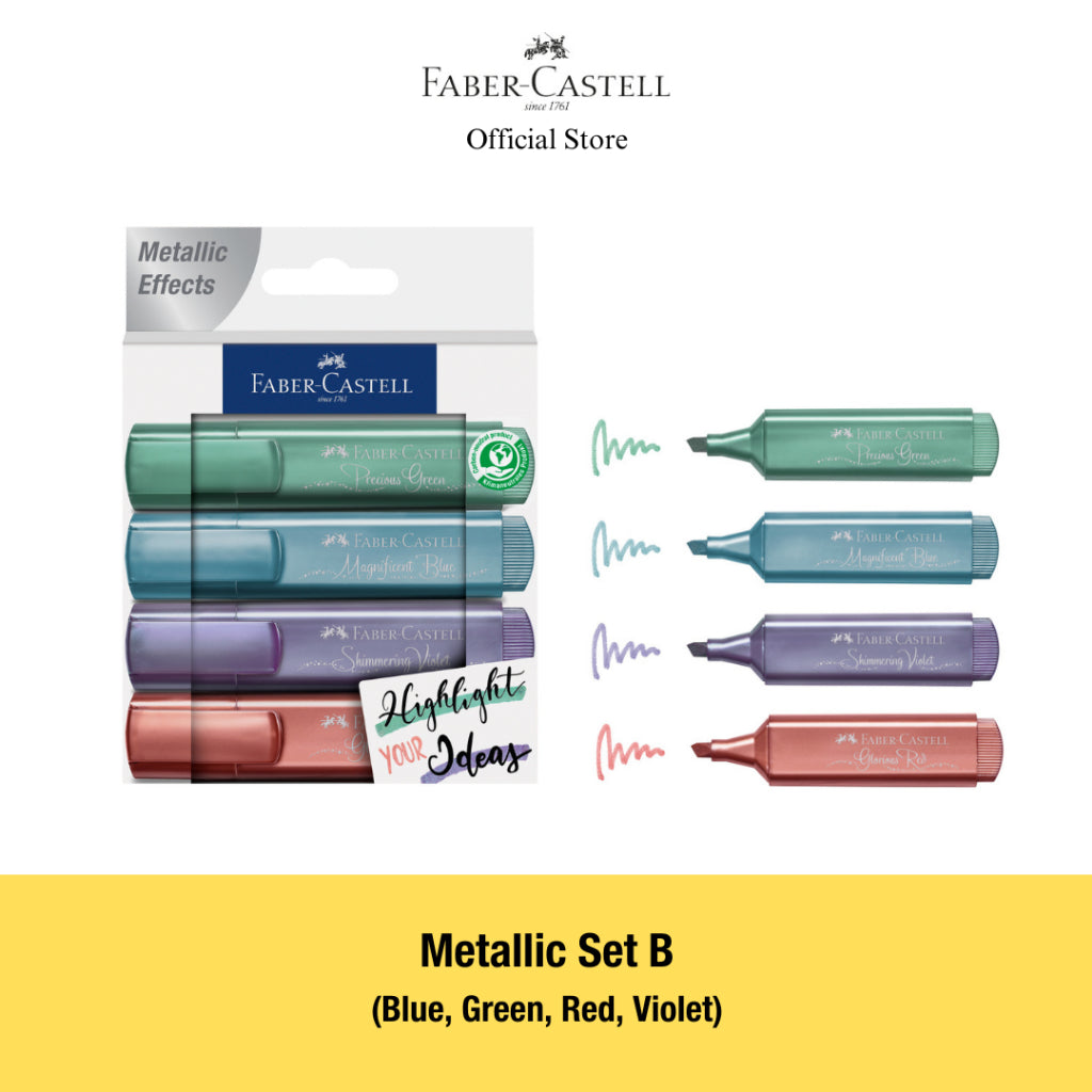 Contents Include: 8 Metallic Highlighters Precious Green, Magnificent Blue, Glorious Red, Glamorous Gold, Shiny Silver, Pearl Rose, Brilliant Ruby and Shimmering Violet