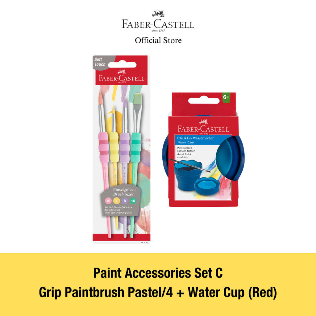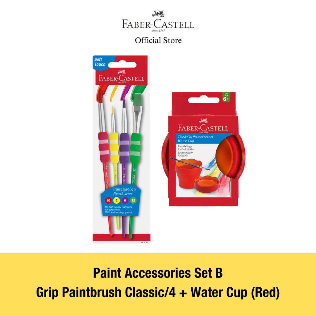 Set includes set of 4 brushes and 1 watercup (choice of colour: blue or red)