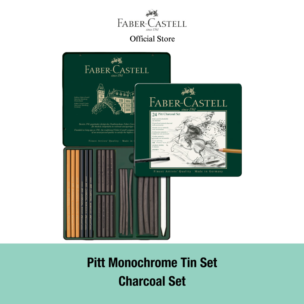 Natural charcoal sticks are the oldest sketching and drawing material in the world. The greyish-blue shade glides softly across the paper, rubs and smudges easily, and can be erased without difficulty and repeatedly overlaid. Their blueish hue has always held a fascination, even with the old masters. The charcoal pencils leave a much blacker line. Compressed charcoal with soot and clay give the charcoal pencils their deep black colour and can be produced in different degree of hardness.